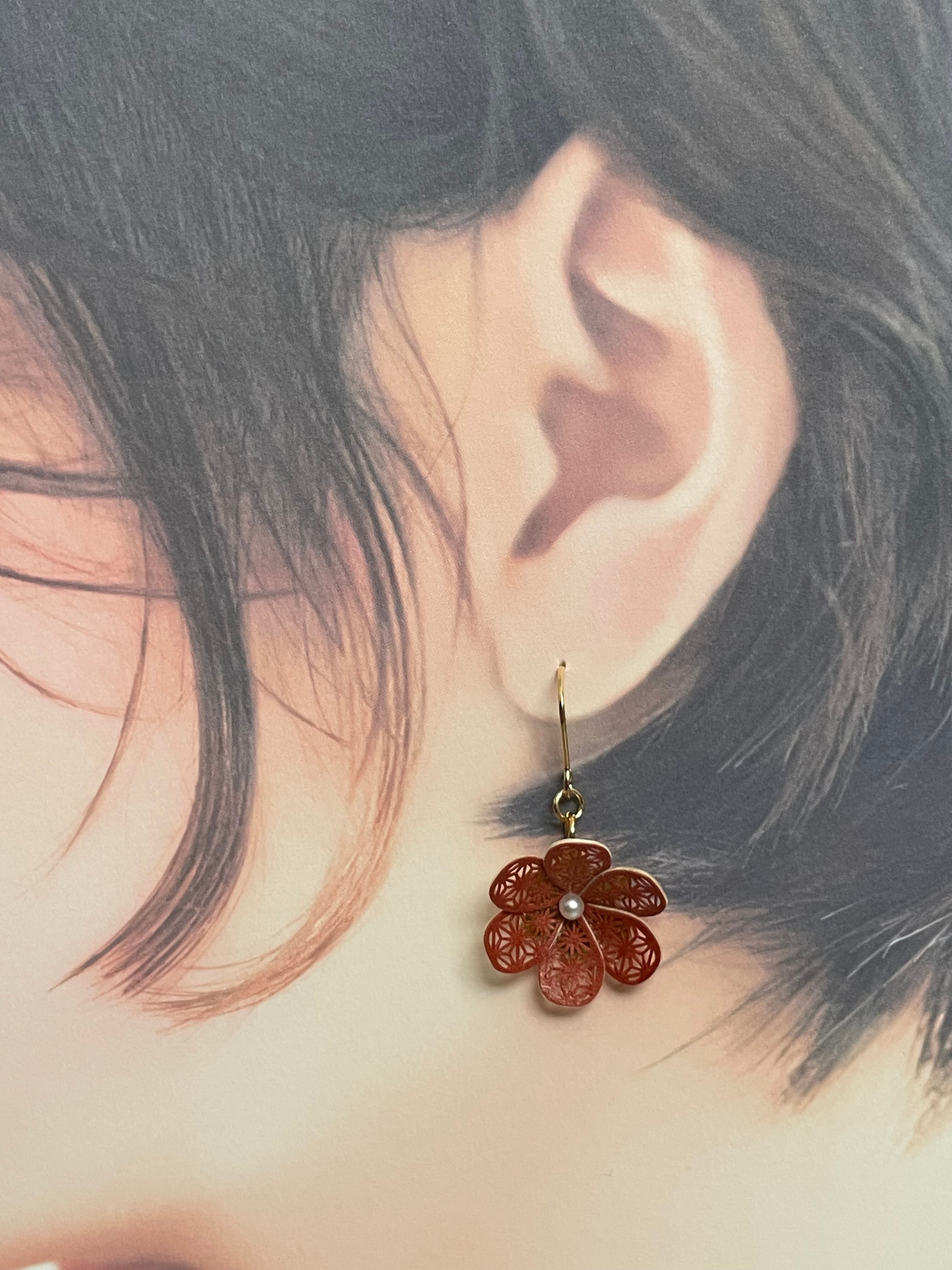 ■赤の紙花耳飾り